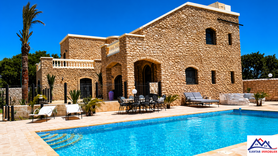 Sur la route de Marrakech à seulement 20 kms d’Essaouira très belle villa à vendre, composée d’un Rez de chaussée plus étage, d’une surface habitable de 337 m², édifiée sur un terrain de 5900 m², 9 pièces, ...