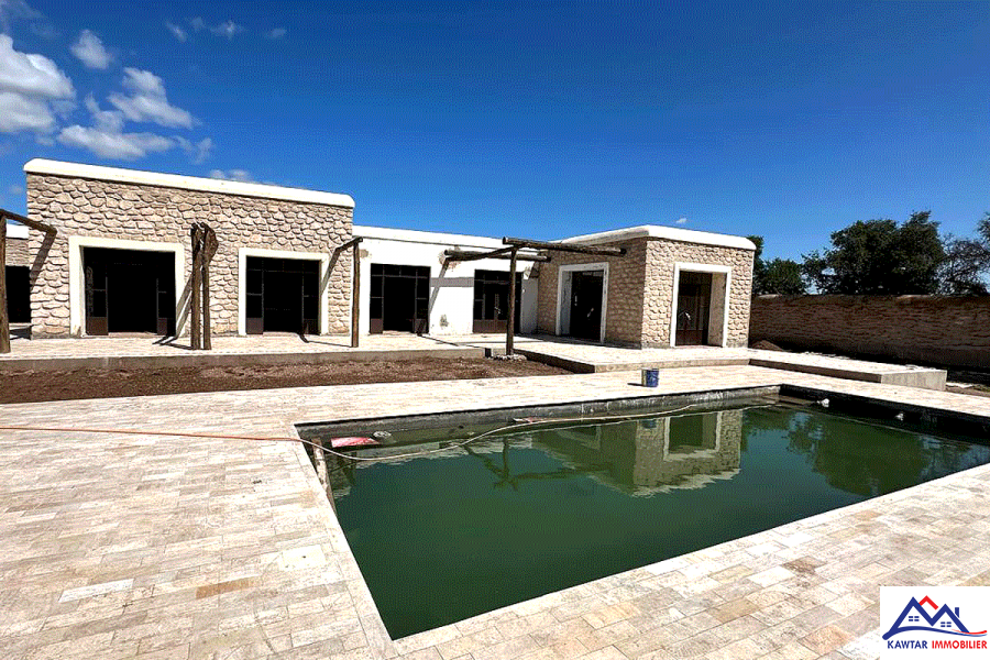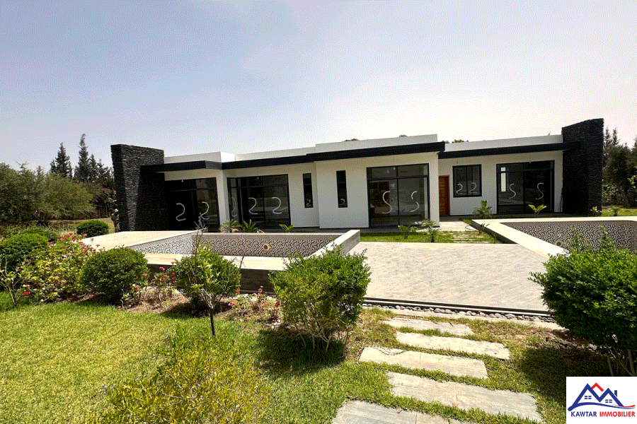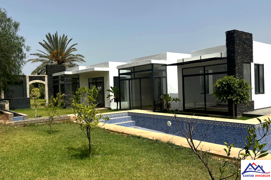 A seulement 5min en voiture d’Essaouira vers la route de Marrakech se trouve cette belle villa plain pieds d’une surface habitable de 240m², édifiée sur un terrain de 1550 m² clos de murs avec piscine et un beau jardin gazonné . Cette d...