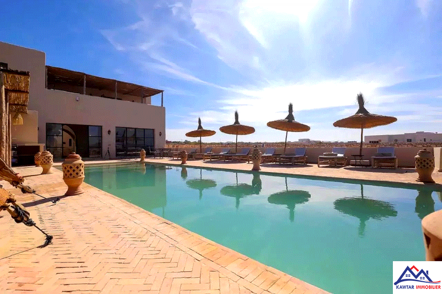 Kawtar immobilier vous propose ce magnifique projet touristique en cours de finition situé à seulement 12 km d’Essaouira sur la route de Safi, édifié sur un terrain de 11560 m² et une surface habitable de 840 m², style Riad construits avec gout par un a...