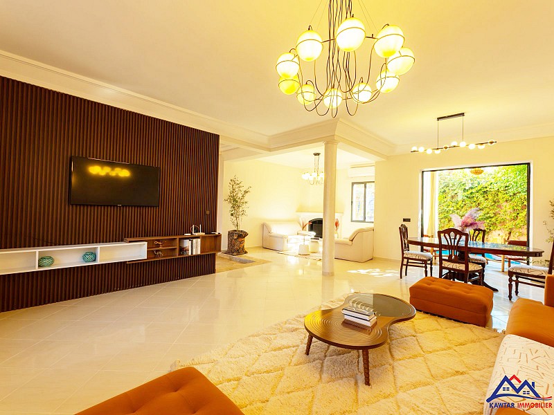 Cette prestigieuse villa moderne de style Riad, d'une superficie habitable de 300m² sur un terrain de 600m², incarne l'essence même du luxe et du raffinement. Nichée dans un quartier exclusif, cette résidence impressionnante est meublée avec un souci d...